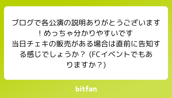 質問 匿名希望 2026/01/18 13:26 Bitfan IDでログイン パスワードを忘れた方はこちら ログインできない場合 ログインしたままにする または Xでログイン Facebookでログイン Bitfan IDとは Bitfan IDを未登録の方 Bitfan IDとは何ですか Bitfan IDは本サービスを利用するために必要なアカウントとなっております。 外部SNSアカウントを利用したご登録、または任意のメールアドレスとパスワードを利用したご登録ができます。 質問・リクエストを送る URLをコピーする 報告する